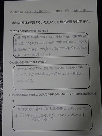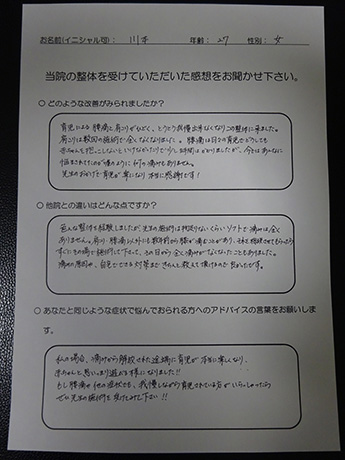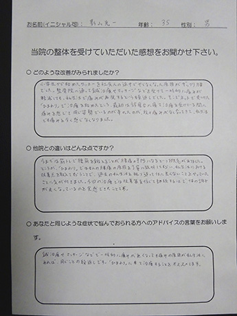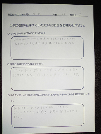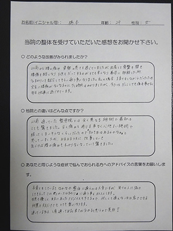 仕事に支障がでるほどの背中の痛みが改善! T・S様 27歳 男性