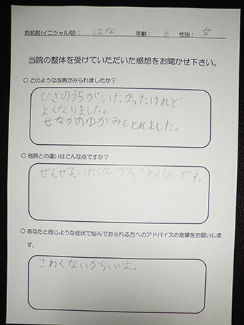 膝の裏の痛みが改善! はなちゃん 6歳 女の子