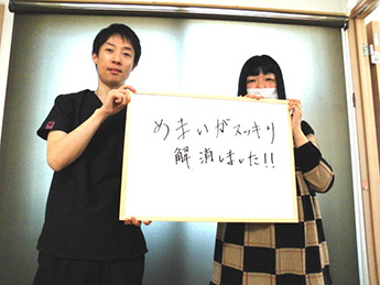 「めまい」施術に伺ったのに膝の痛みや腰のだるさなどが改善した事がよろこびです。