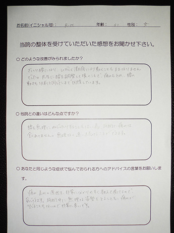 慢性的な腰痛が改善しました! H・T様 39歳 女性