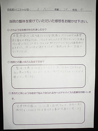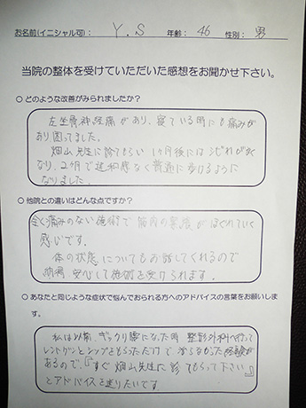 ぶり返した坐骨神経痛から解放! 吉田様 60代 女性