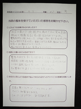 朝の目覚め時の腰痛が無くなった! T・M様 27歳 男性