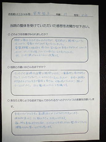 背骨のゆがみの改善により歩行がスムーズに! 宮原容子様 59歳 女性