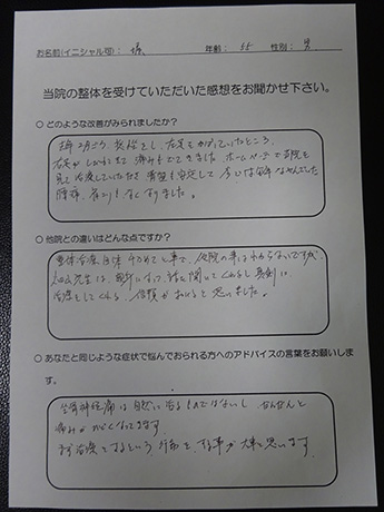 病院で改善しなかったヘルニアがとうとう改善! A・N様 20代 男性